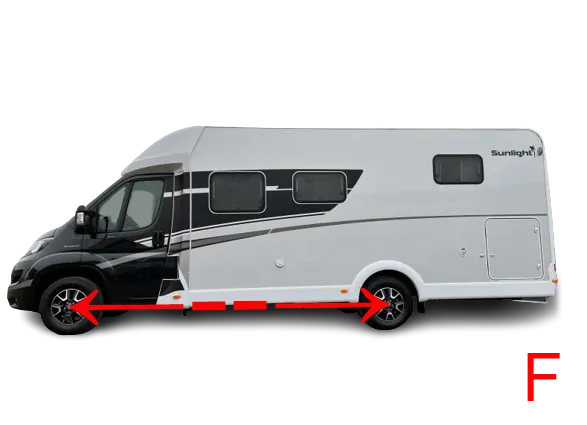5. Wielbasis: (aantal cm's vanaf het hart velg naar hart velg zie voorbeeld foto F)