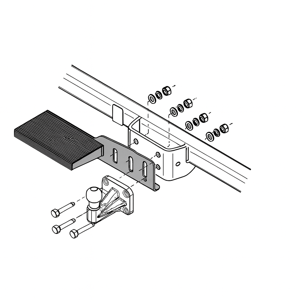 Opstaptrede trekhaak past op vele bestel bussen en campers